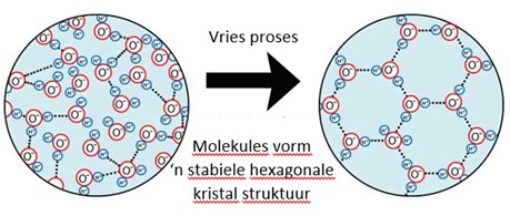 Dit gebeur omdat die watermolekules teen daardie temperatuur nie meer vry rondom en styf teen mekaar beweeg nie, maar ‘n hexagonale kristalstruktuur vorm wat die molekules uitmekaar druk en meer ruimte tussen die molekules bewerkstellig. Dit is waarom ys se digtheid laer is as water, en waarom ys dus dryf op water. Hoe vreemd sou daai koeldrank of dubbel-brandewyn gelyk het as die ys onder gaan lê het! (En waar sou die ysbere woon?)