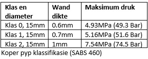 Pype wat ‘n hoër druk kan hanteer het natuurlik ook ‘n beter kans om dit te oorleef… Koper pype kom bv. in verskillende klasse, 0, 1 of 2: met die duurder klas 2 pyp wat dikker wand-diktes het en meer druk kan hanteer.
