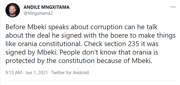 Die leier van die Black First Land First-beweging (BLF), Andile Mngxitama het in sy woedende aanval op oud-president Thabo Mbeki